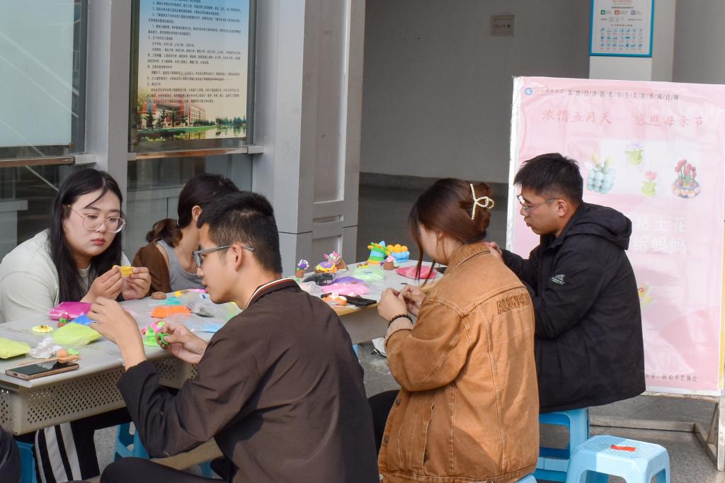 为增添母亲节节日气氛,让感恩之情盈满心间,培养大学生感恩的良好品行,弘扬中华民族感恩的传统美德。beat365英国官方网站于2023年5月14日在土建楼一楼大厅举办“浓情五月天,感恩母亲节”黏土手艺活动。