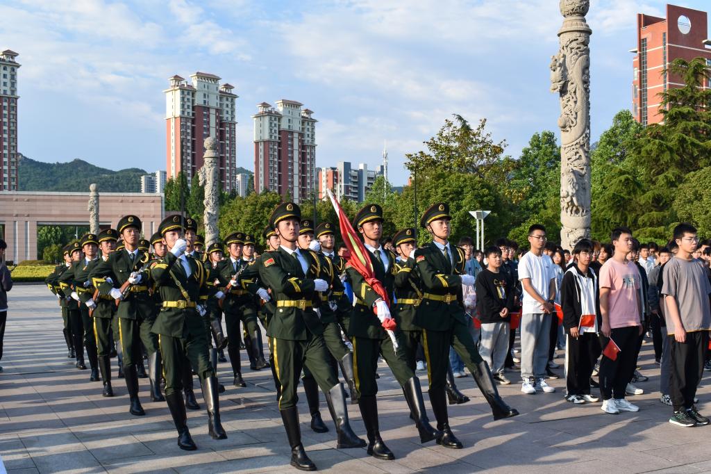 beat365英国官方网站合唱团在国旗下献唱《党旗飘扬的方向》和《歌唱祖国》。党旗高擎号角鸣,众志成城浩气腾,他们用激昂的旋律表达对祖国、对党的热爱与忠诚。同学们随着歌声舞动手中的小国旗,建筑学22级学生帅泽康表示:“在国旗升起的瞬间,我内心激情澎湃。我们作为科大学子,要好好学习、不负祖国人民期待,在为祖国、为民族、为人民、为人类的不懈奋斗中勇毅前行。”