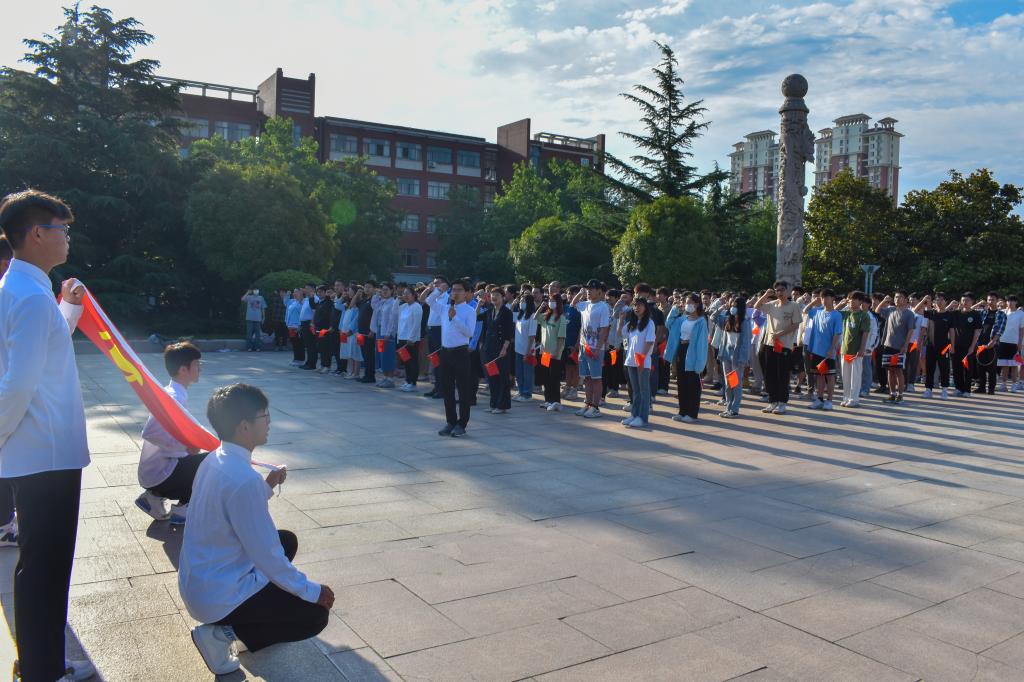 6月12日清晨,beat365英国官方网站于泰山广场举行“礼赞二十大,青春跟党行”主题升旗仪式。beat365英国官方网站党委副书记高静、团委书记朱统汉、全体辅导员及学院21、22级学生共同参加了此次升旗仪式。