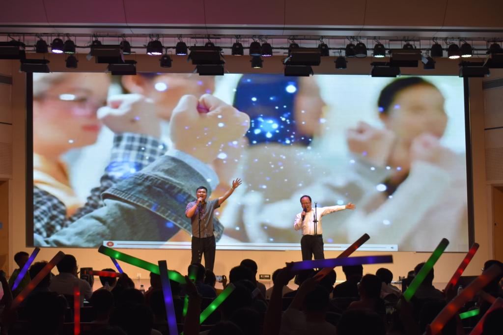 晚会节目精彩纷呈,掌声此起彼伏。学院学生工作干部带来的歌曲《再见》和《三句半》把现场的气氛推向了一个又一个的高潮,字里行间都是对毕业生们的不舍与祝福。