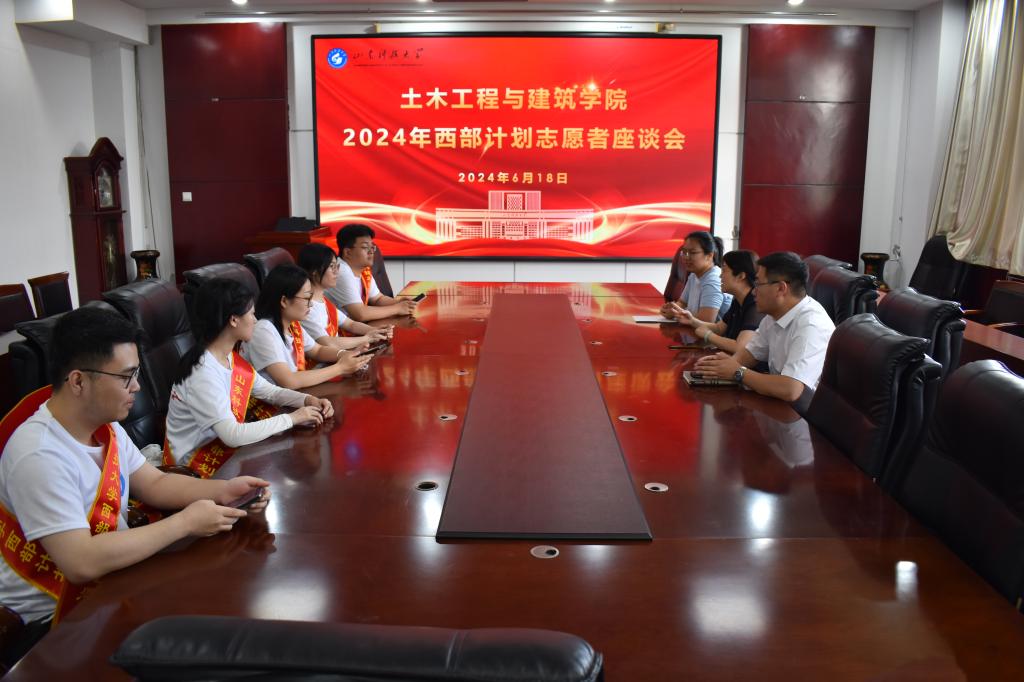 6月18日,beat365英国官方网站在J15-316召开西部计划志愿者座谈会,学院党委副书记兼副院长高静,学生工作办公室主任、团委书记王贝贝,毕业生辅导员老师张翌参加此次座谈会,欢送即将奔赴祖国西部参加志愿服务的2024届毕业生。