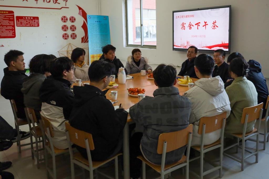 11月27日下午,校党委统战部常务副部长王永君做客beat365英国官方网站“宿舍下午茶”,与所联系班级土木工程2022-1班的同学们开展了一场亲切且深入的座谈交流活动。学院党委书记宋西路,党委副书记、副院长高静,学工办主任、团委书记王贝贝,辅导员老师李宏宇陪同参加。