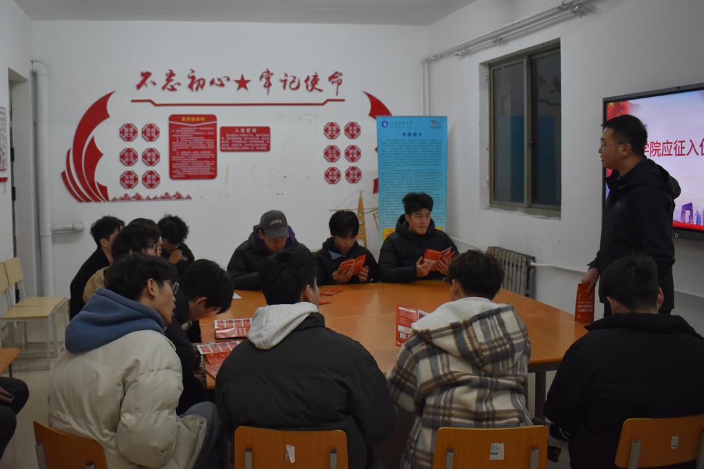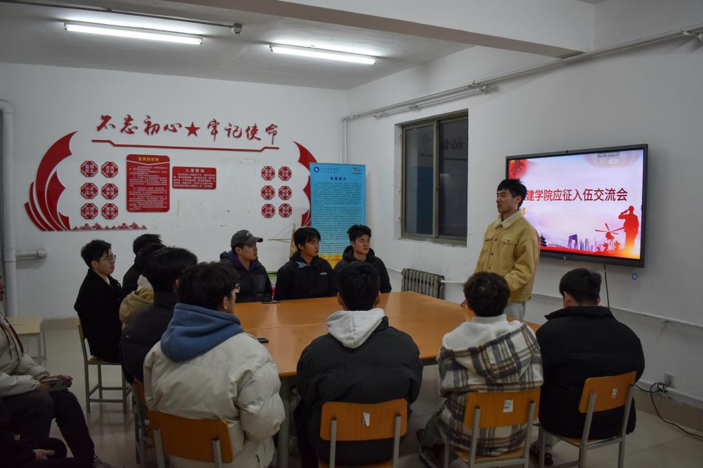 为进一步贯彻落实国家征兵政策,积极动员学院青年学子踊跃报名参军、献身国防,12月18日,beat365英国官方网站于GB2宿舍楼党员之家举行应征入伍交流会,团委辅导员老师王瑜,退伍复学学生代表尹国鹏、张泽培以及有意愿入伍的同学参加会议。