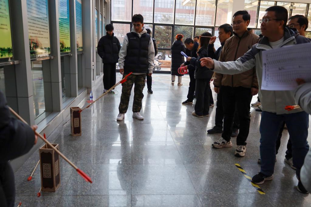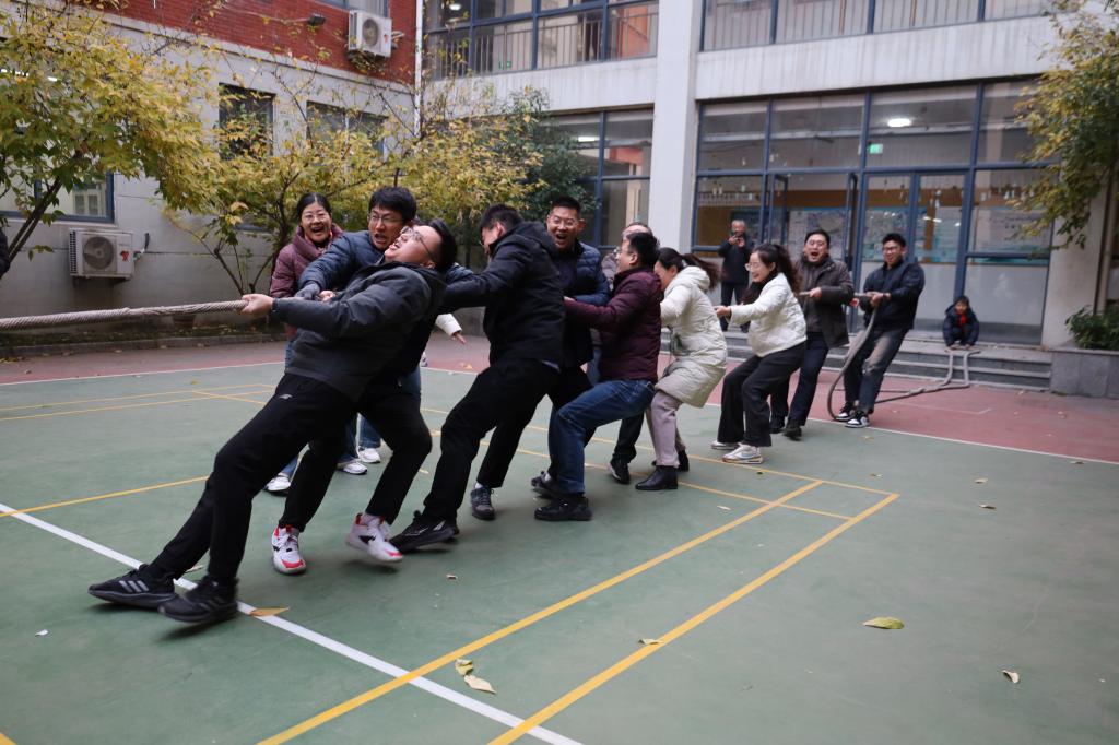 本次运动会精心设置了套圈、投壶、30秒跳绳、保龄球等个人项目和团队项目拔河。在套圈比赛中,教职工们瞄准目标,沉稳投掷,展现出精准的技巧;跳绳赛场,教职工们身手矫健,跳绳在空中起舞,赢得了阵阵喝彩;保龄球项目则考验着大家的力量控制;投壶环节里,大家全神贯注,力求每一支箭都能命中;拔河比赛中,各参赛队伍齐心协力、默契配合、全力以赴,充分体现了团结协作的力量。大家在轻松愉快的氛围中享受运动的乐趣。