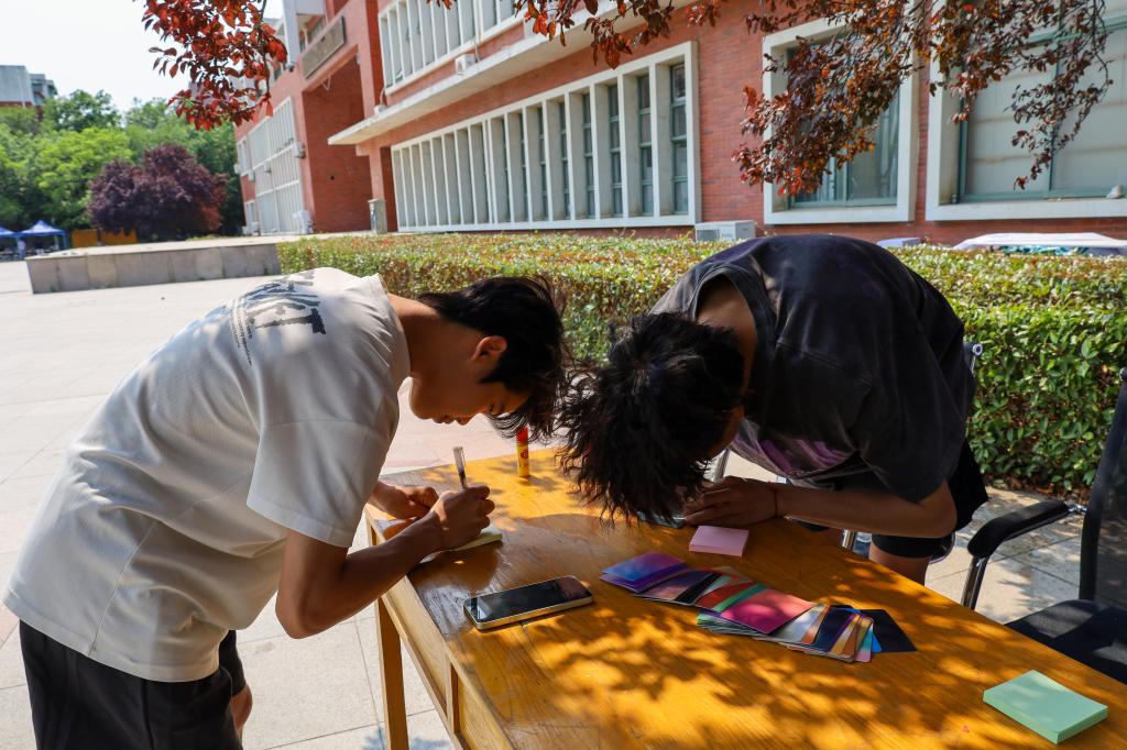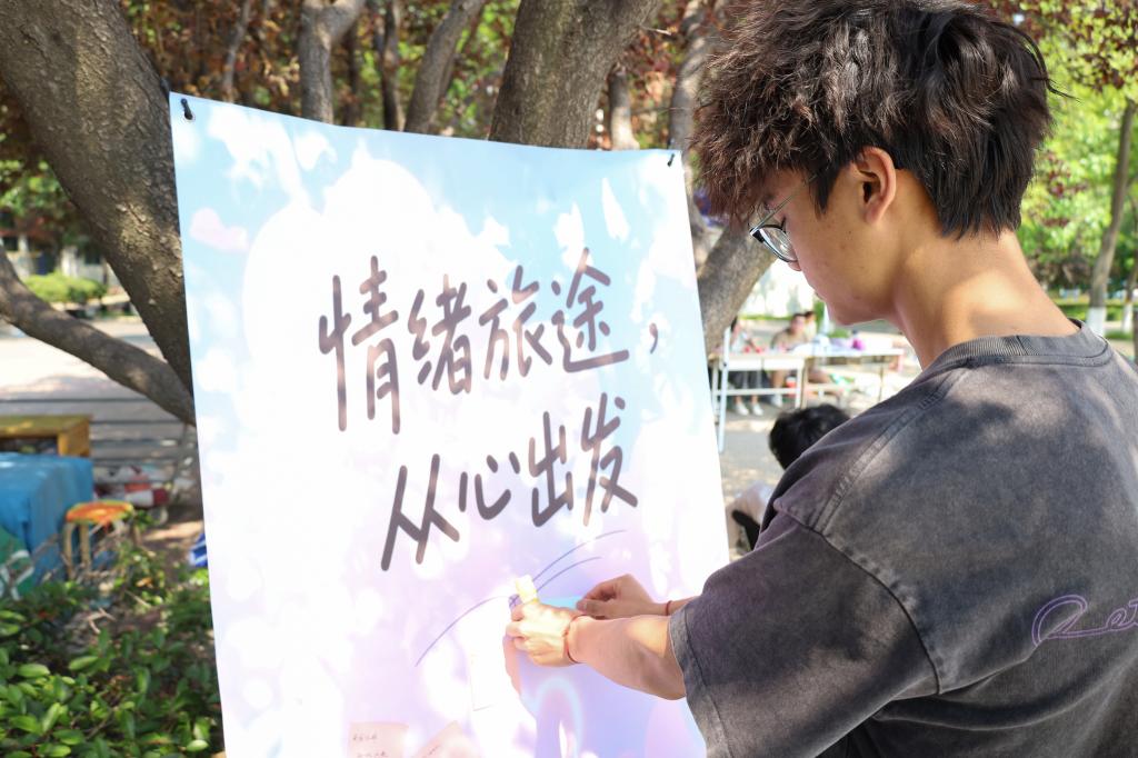 5月25日的“情绪旅途,从心出发”主题活动在繁星广场举办。“抽情绪卡片”环节里,“迷茫”“疲惫”等关键词触发参与者深度思考;“情绪垃圾桶”前,同学们将写满烦恼的纸条折叠投入箱中,有同学坦言“写下‘论文压力’的瞬间,突然觉得没那么沉重了”。而“快乐收集箱”则成为能量中转站,“焦虑时先整理书桌”“你比想象中更有韧性”等便签层层叠放,形成跨越个体的温暖联结。