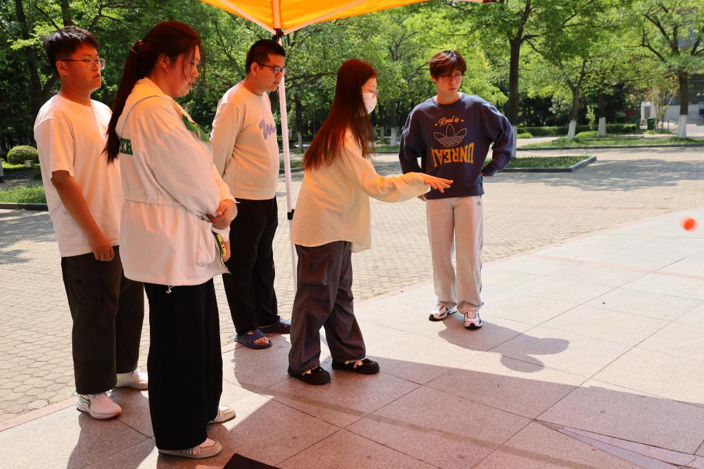 5月24日,“心拥自我,煦暖而行”活动在繁星广场举行。活动展板前,负责人向大家系统科普了情绪ABC理论、呼吸放松法等实用技巧。“心愿漂流瓶”摊位前,匿名纸条在投递与抽取间传递着共鸣:有人写下“考研倒计时的焦虑”,收获“按部就班就是答案”的回复;有人分享“收到录取通知书的喜悦”。最热闹的“烦恼击倒挑战”中,同学们用软球投掷贴有“拖延”“内耗”等标签的塑料瓶,随着瓶子应声倒地,欢呼声与奖品兑换的笑声交织成轻松的节奏。志愿者们全程陪伴倾听,为需要倾诉的同学递上纸巾与暖心建议。