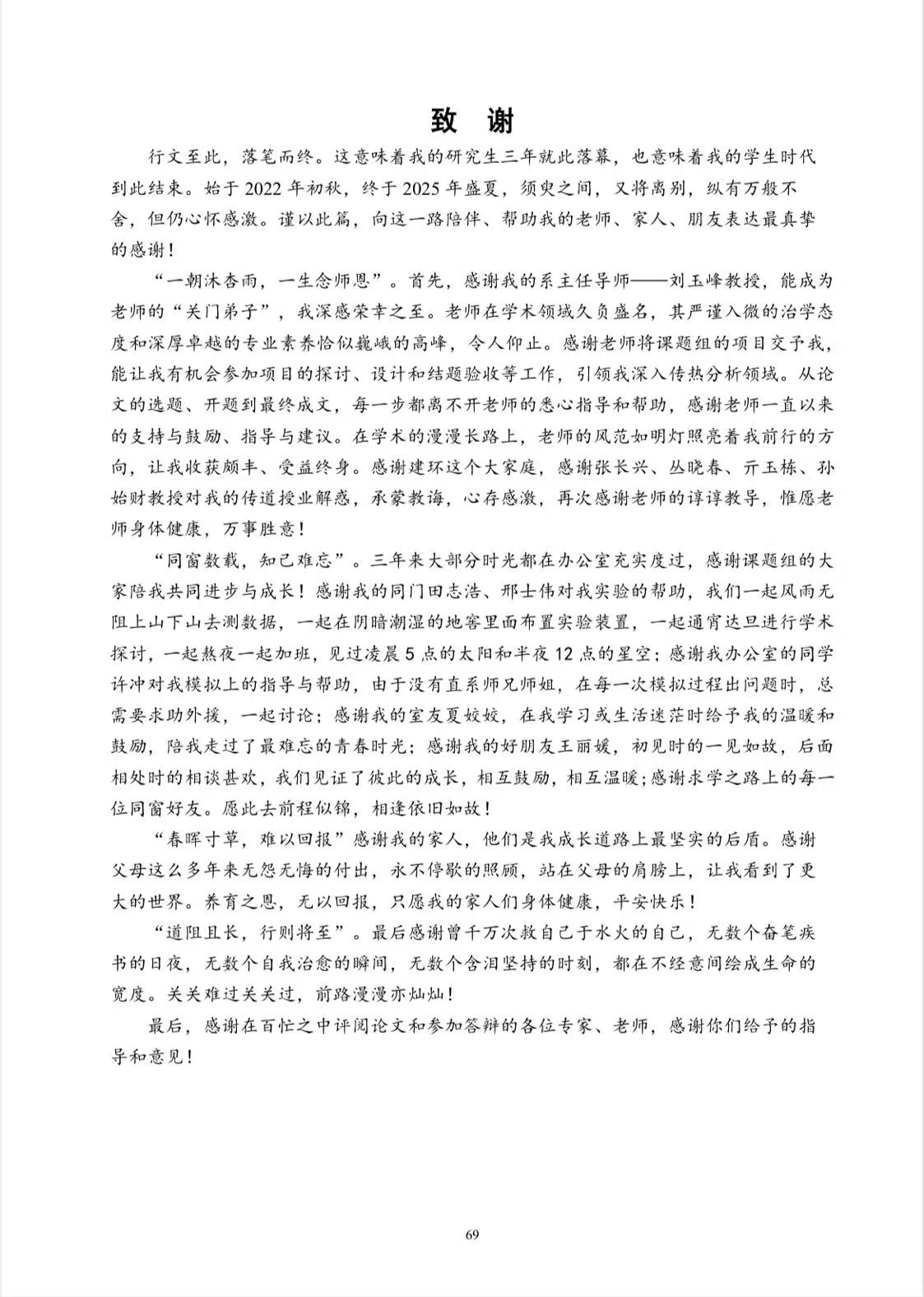 “愿携此间温暖,赴下一场春山。”致谢不仅是告别,更是新篇的序曲。史梦楠写下“花开两朵,天各一方”的洒脱祝福;钱忠光以“三十功名尘与土,八千里路云和月”自勉。这些文字既有对过往的珍视,更饱含对未来的期许。正如陈涛同学所写:“论文可以停留在第六章,但是人生的篇章还要继续写。”这些致谢辞,已然成为毕业生们整装再出发时最温暖的行囊。