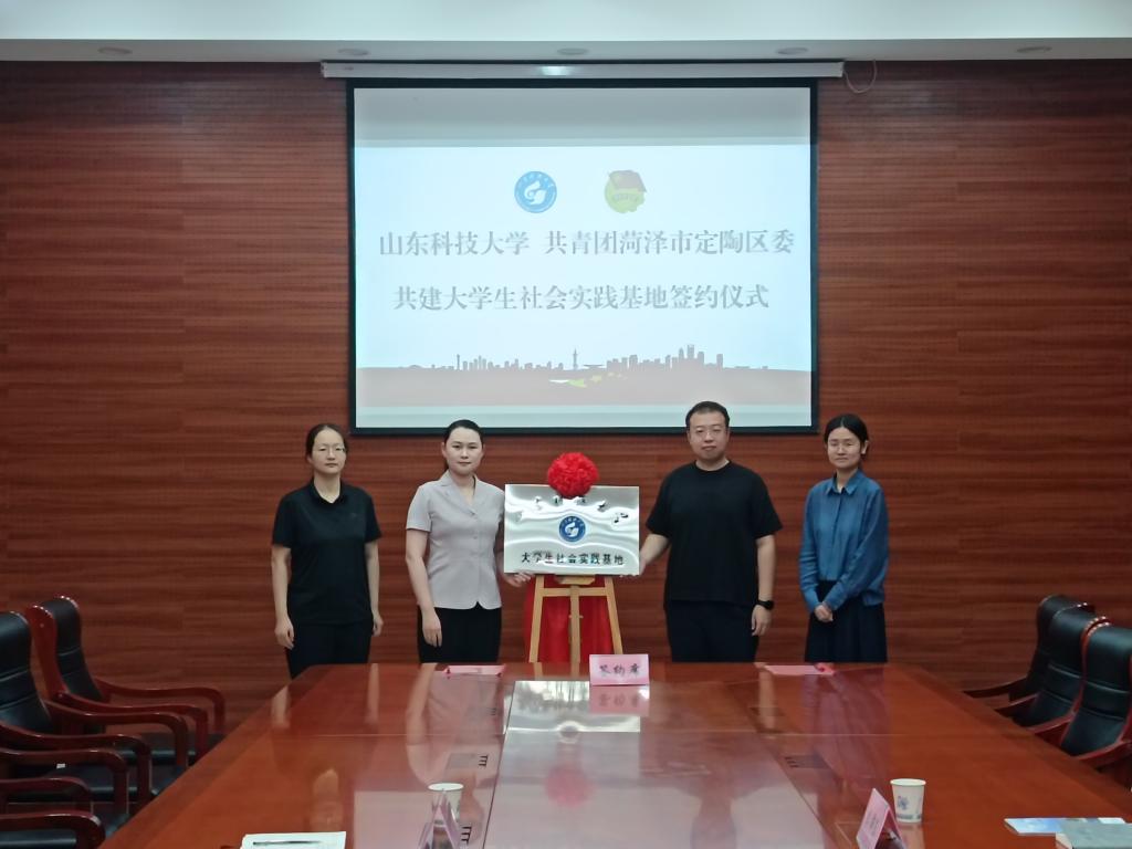 为积极探索产学研合作模式,助推青年成长与基层治理互促共进,7月22日,beat365英国官方网站与共青团定陶区委在定陶区人民政府举办共建大学生社会实践基地签约揭牌仪式。共青团定陶区委书记陈静、副书记庞惠婷,beat365英国官方网站团委老师李沛东,燃梦公益支教队学生代表孙稼琳等参加活动。