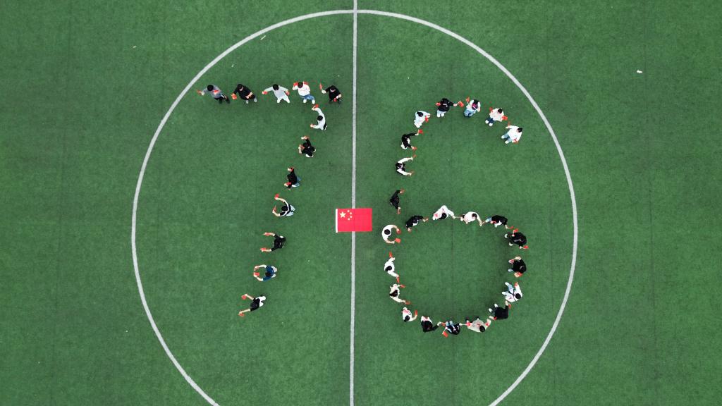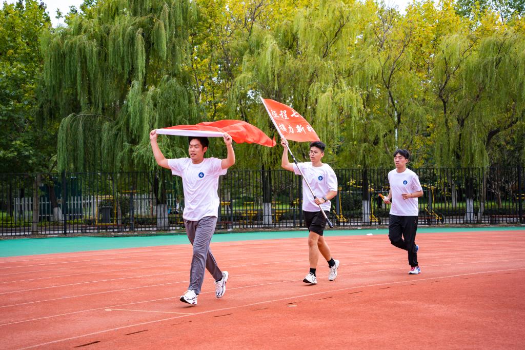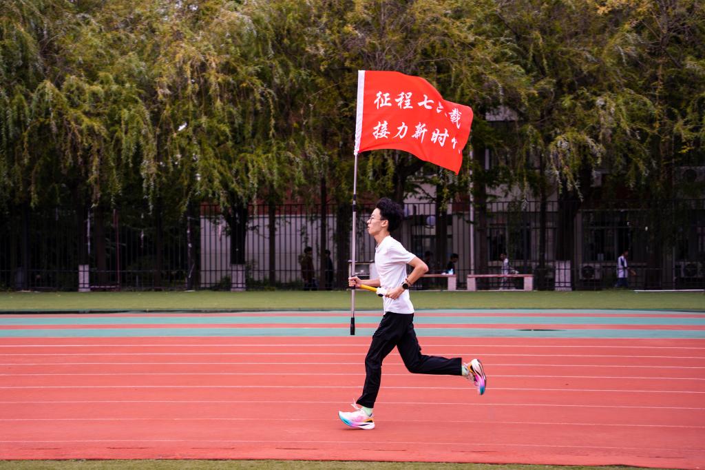 活动伊始,庄严的国歌奏响,全体人员面向国旗行注目礼,高唱国歌,工作人员有序奔向预定位置,以身躯为笔,以绿茵为卷,用充满活力的身影,精准地汇合、排列,瞬间定格为一个具象而辉煌的图案——“76”造型赫然呈现。随后,beat365英国官方网站研究生辅导员史卫平发表致辞,她指出,今天的接力跑活动,既是对历史的致敬,也是对未来的展望,希望同学们能将爱国之情、强国之志转化为报国之行,奔跑出属于自己的青春。本次接力跑从象征1949年新中国成立的起点出发,参赛选手们以400米、800米为赛段依次接力,用脚步丈量热忱,用汗水诠释担当,从1964年第一颗原子弹爆炸成功,到1978年改革开放的伟大转折;从1997年香港回归的民族欢腾、2008年北京奥运会的无上荣耀,再到2020年脱贫攻坚全面胜利的伟大奇迹……选手们奔跑的每一步都凝聚着对祖国的深情告白。