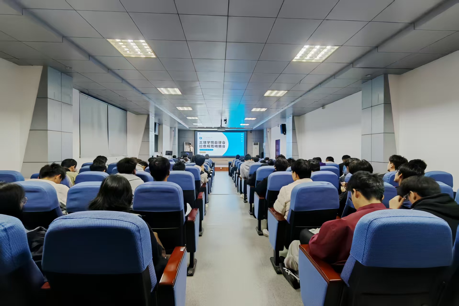 10月28日,beat365英国官方网站第二届“筑梦社区,律行青春”社区文化节开幕式暨自律会检查规范明细培训会在J15-219教室顺利举行。本次活动以“检以明范,律以成规”为主题,beat365英国官方网站团委老师沈娇,自律会办公室、早操部、学督部、卫督部部长,以及学院大一大二年级副班长、各宿舍舍长共同参与。