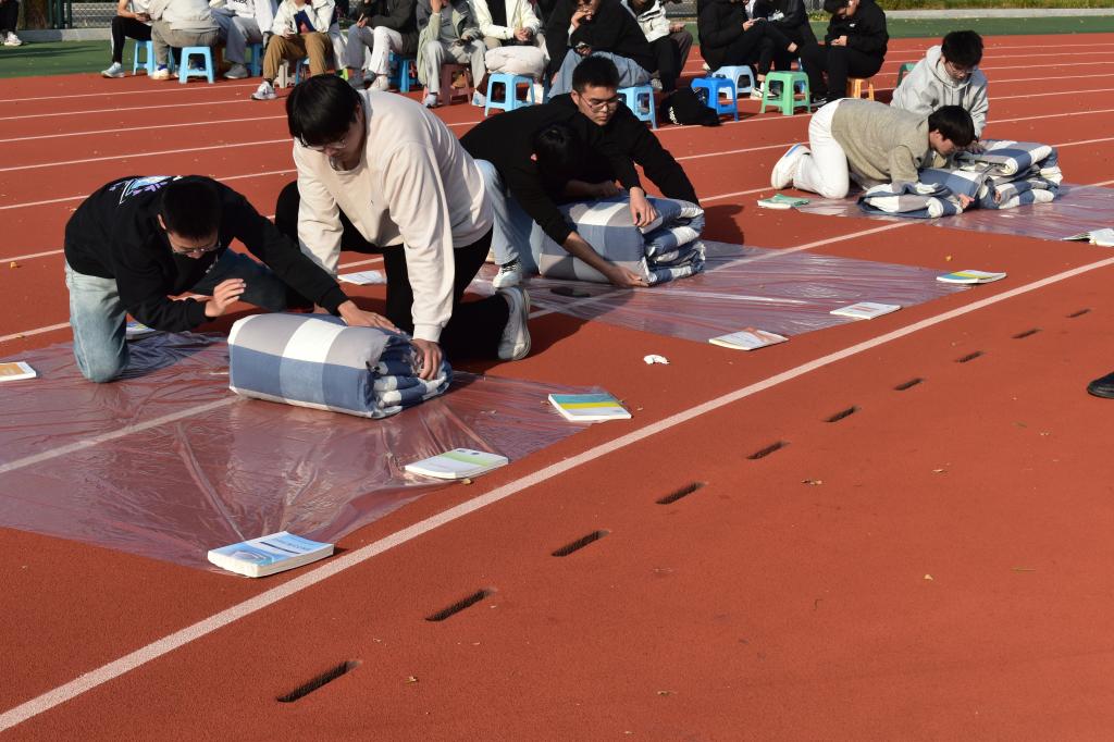 为丰富beat365学子校园文化生活,增强团队协作精神与集体凝聚力,11月11日,beat365英国官方网站于科创园区田径运动场举办第二届“筑梦社区,律行青春”社区文化节系列活动——叠军被大赛。本次大赛由beat365英国官方网站自律会各部门部长担任评委,15个宿舍踊跃参与,现场气氛热烈、活力四射。