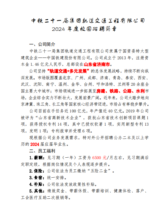 招聘信息(064)中铁二十一局轨道交通工程有限公司