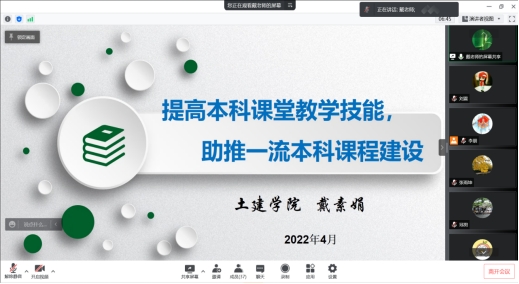 戴素娟以“提高本科课堂教学技能,助推一流本科课程建设”为题,分别从一流本科课程建设和本科课堂教学技能提升两个方面展开讲述,针对青年教师教学误区、讲好课的标准及提高课堂教学技能等问题和与会青年教师进行了分享与交流,并对青年教师提升基本功提出“多听”、“多看”、“多想”的建议。