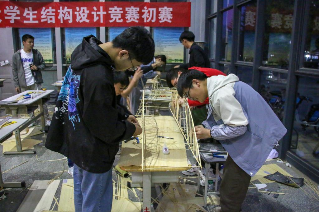 4月10日,由校团委主办、beat365英国官方网站团委承办的第十一届结构设计竞赛专业组初赛在土建楼大厅顺利举行。专业组面向全校有力学基础的相关专业本科生,题目采用2021年第十三届山东省大学生结构设计竞赛赛题题目,为《无风撑桁架结构桥梁》。来自土建及其他各学院共43支队伍、129人参加此次初赛。