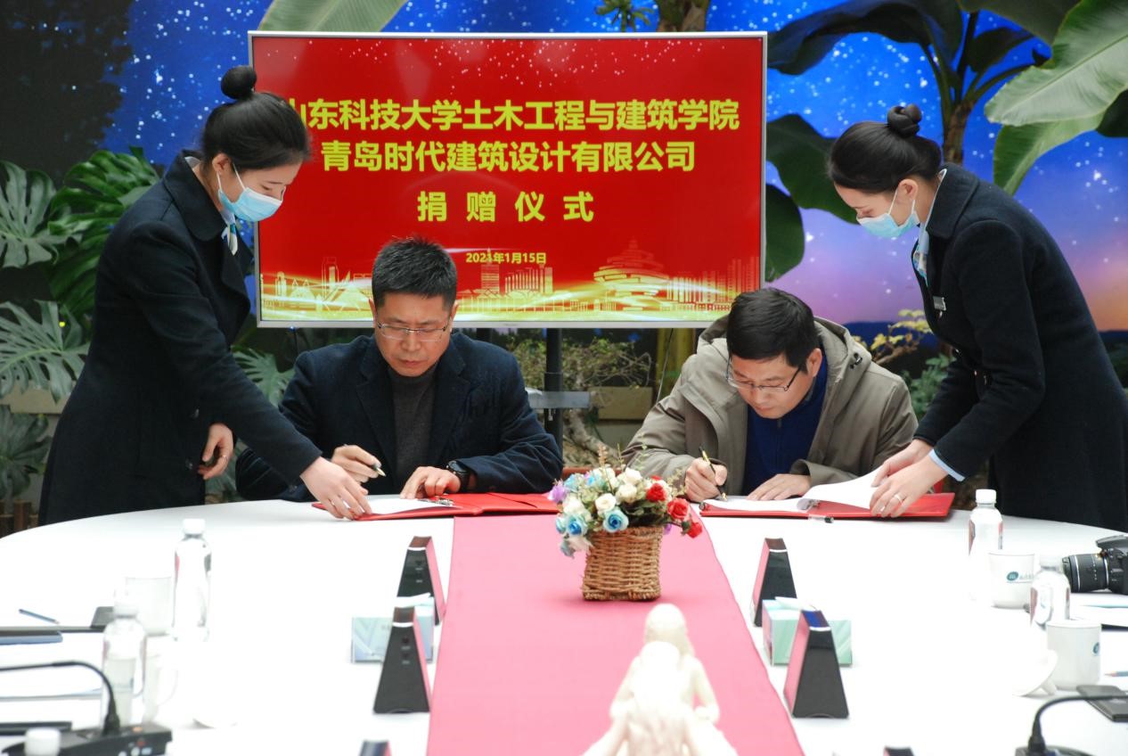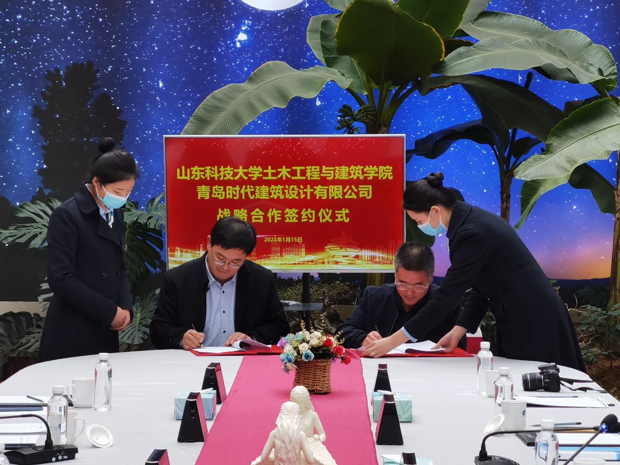 宋西路和于海鹏共同为“beat365英国官方网站大学生就业创业实践基地”“beat365英国官方网站教学实践基地”揭牌,并代表双方签署《校企合作协议》《BIM合作协议》等4份协议。薛力、青岛时代建筑设计有限公司综合办主任沈新宇代表双方签署《奖学金捐赠协议》等2份协议。