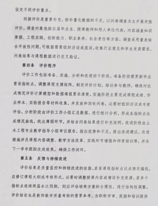 土木工程专业毕业要求达成情况评价、反馈及持续改进实施办法