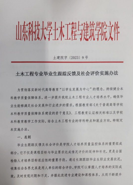 土木工程专业毕业生跟踪反馈及社会评价实施办法