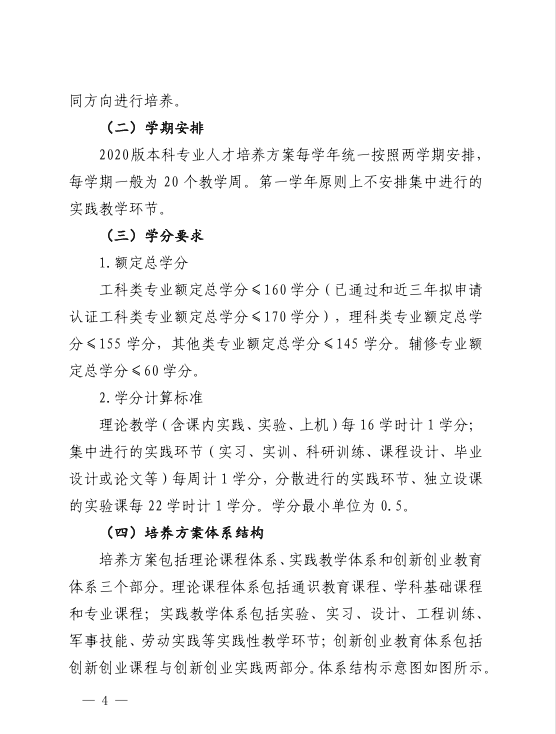 关于修订2020版本科专业人才培养方案的指导意见