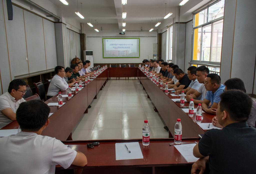 6月13日,beat365英国官方网站矿井建设专业2007级校友在J15-201会议室举行毕业十周年师生座谈会,来自全国各地的37名校友欢聚学院,重温母校情、师生情和同窗情。教务处处长乔卫国,beat365英国官方网站院长王崇革,数学学院党委书记徐明磊,beat365英国官方网站副院长王刚、都浩,李廷春教授,徐正中副教授等参加了本次座谈会。座谈会由该班级辅导员徐正中主持。